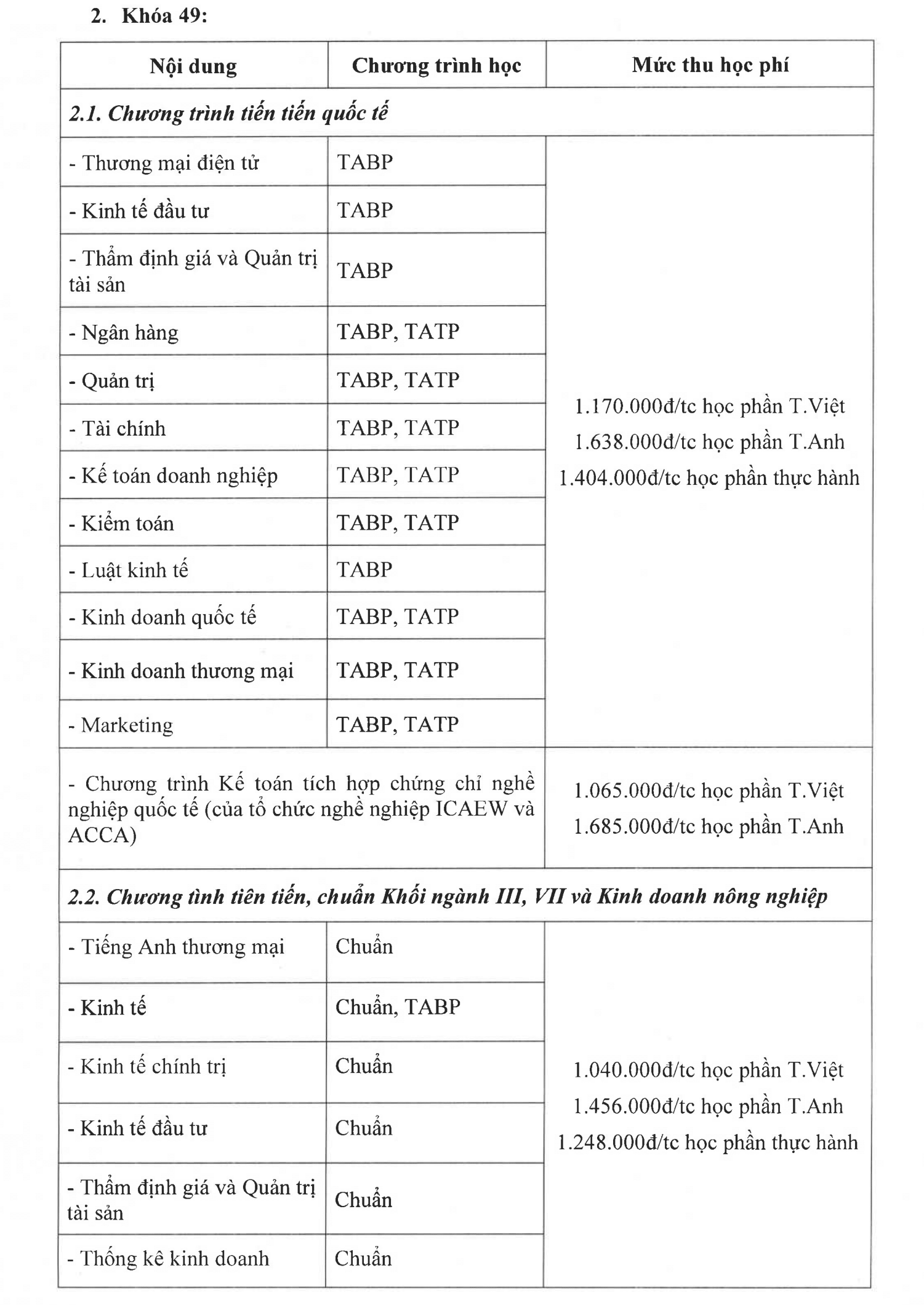 Thông báo về việc nộp học phí của học viên cao học và bồi dưỡng khóa 23